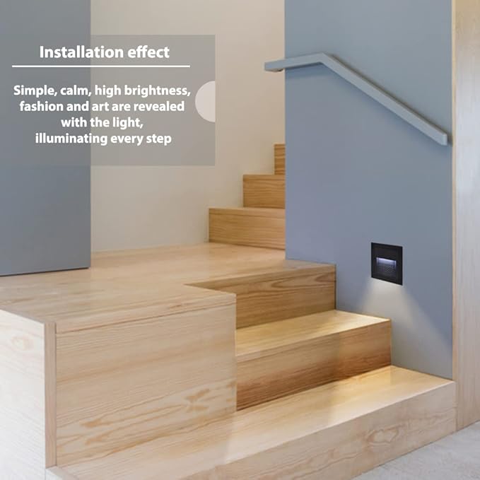 - Good quality: Black shell, cool white 6000K, aluminum corner staircase light step light, IP65 waterproof, suitable for indoor and outdoor. (IP65 can prevent the splashing water, but cannot be installed directly under water)
