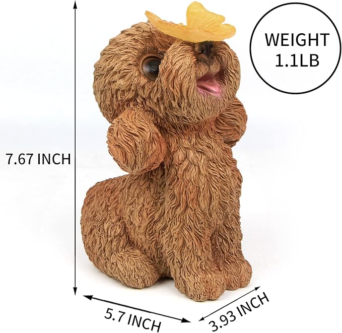 - Cute Garden Statue - Retro brown appearance, deep eyes, little tongue, clear texture. Butterfly rests on Teddy's nose, making the puppy Lively and vivid.