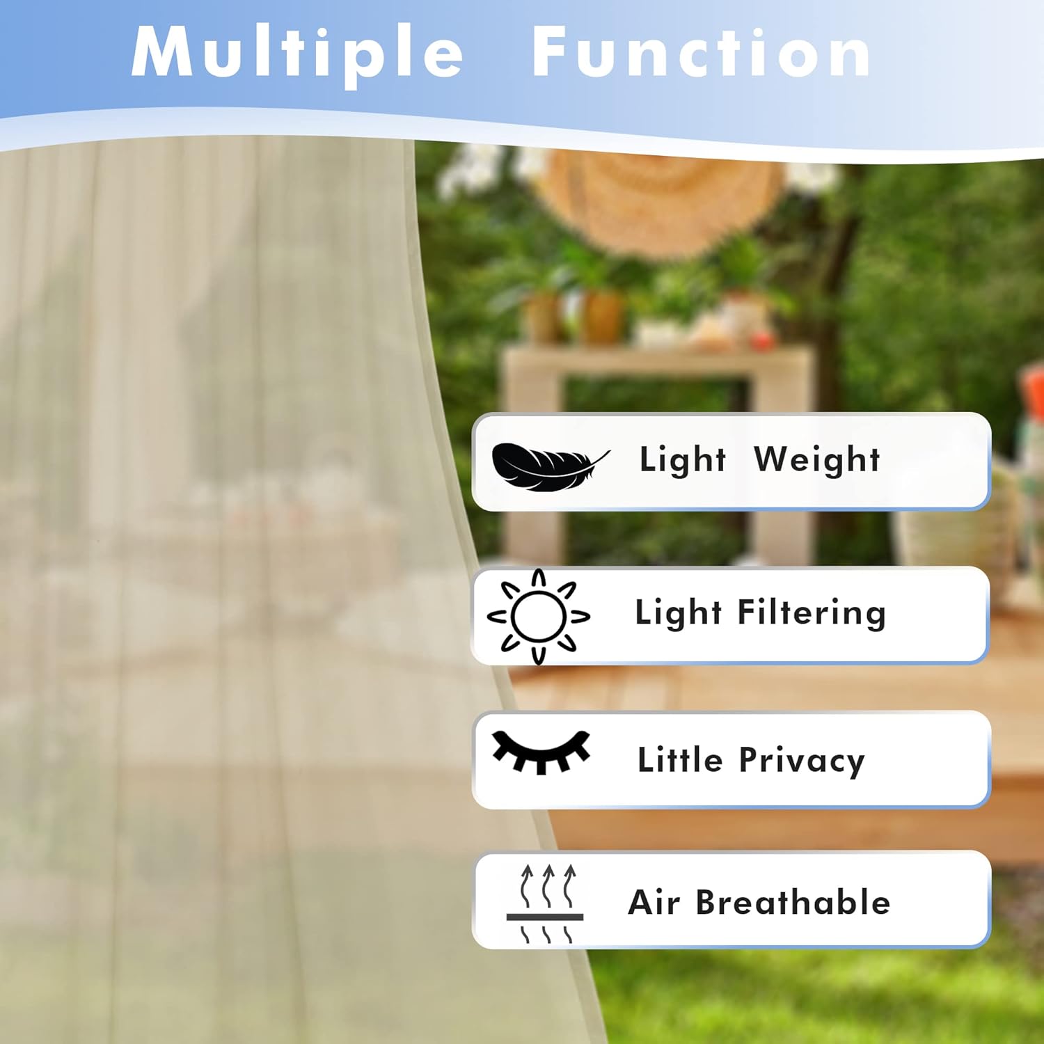 HolidayIdeas Outdoor Sheer Curtains for Patio Waterproof, 4 Panels - 54 x 120 Inch - Light Filtering Voile Outside Curtains Grommet Drapes for Front Porch, Gazebo, Pergola, Backyard, Linen Color
