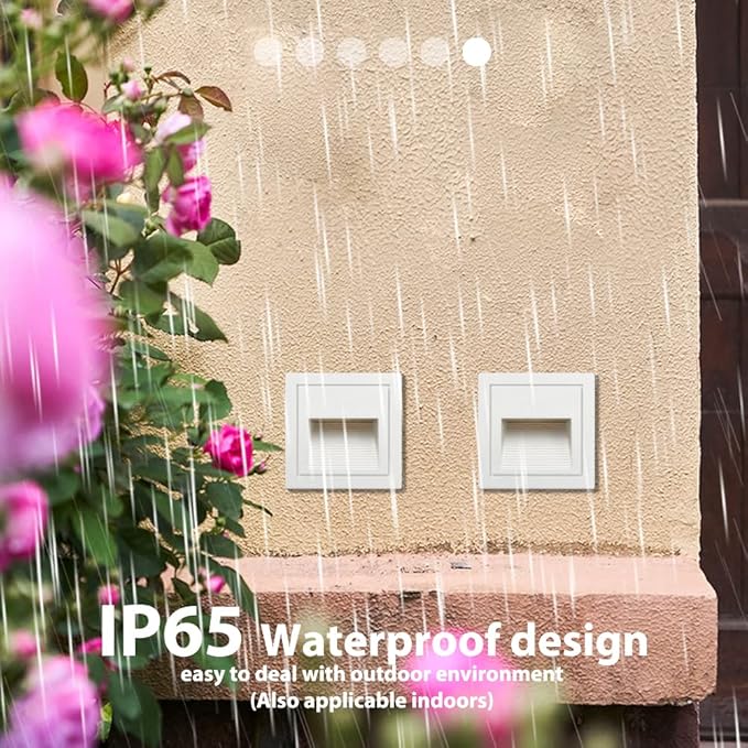 - Good Quality: white shell, warm white 3000K, aluminum corner staircase light step light, IP65 waterproof, suitable for indoor and outdoor; IP65 can prevent the splashing water, but cannot be installed directly under water