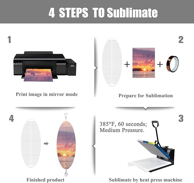 - 【Perfect Sublimation Coating】Our 3D Double Sided Wind Spinners come with premium sublimation coating that promise the sublimation print colors bright and won’t fade. It can be personalized both sides with single or 2 different designs. Heat press setting 385°F for 60 seconds; Medium pressure.