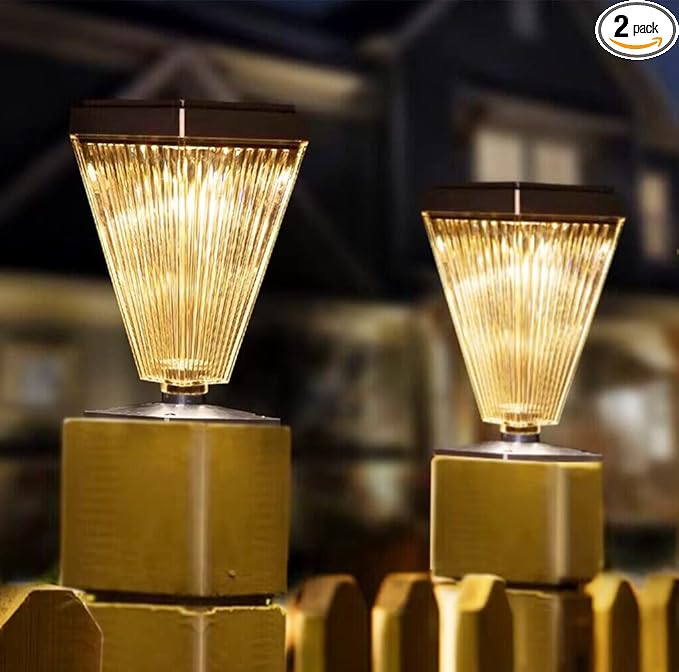 2 Pack Solar Post Lights Outdoor Waterproof IP65 Solar Fence Post Pillar Lights Landscape Stake Decorative Fence Yard Patio Walkway Pathway Light Up to 12 Hrs
