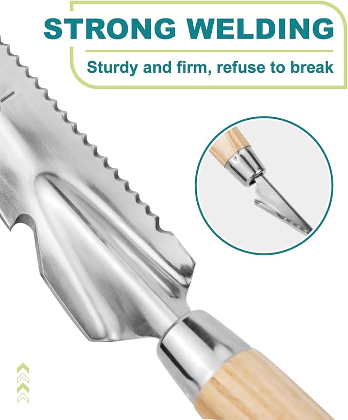 - HIGHLY VERSATILE MULTI-TOOL - Not only a perfect weeders removal tool, also can be used as a long handle shovel for transplanting, a digging trowel and a conveniently cutting notch for cutting gardening ropesandwires. The most multi-use garden hand tools you ever need, buy 1 equals get 5.