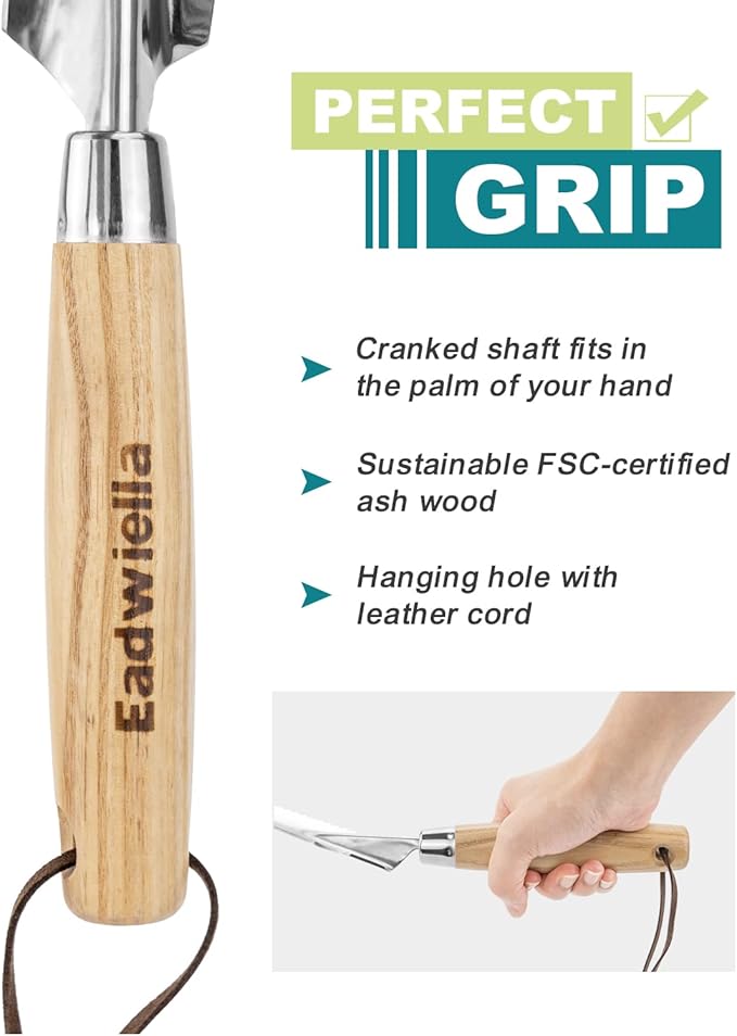 - COMFORTABLE HANDLE - The ergonomically designed hardwood handle provides a comfortable grip, reducing hand stress and tension. Hole on the handle allows hanging display and storage.