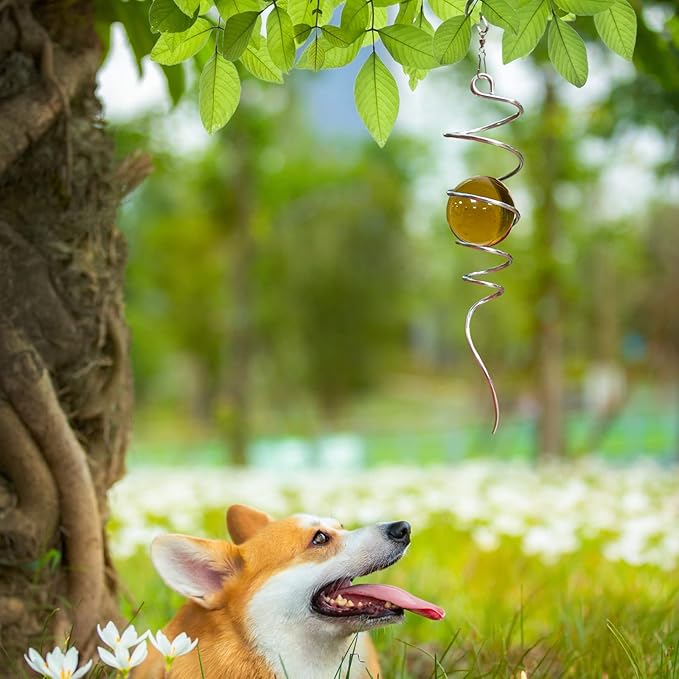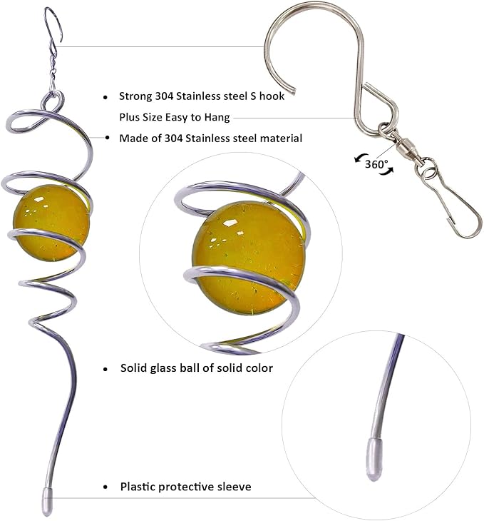 - 【Unique Spiral Design】The gazing ball spiral tail is an unique hanging ornament ,Also it can help to stabilize 3D wind spinners or yard decor from swing when it rotate.When the spiral tail rotates to the left, the glass ball seems to move upwards,when the spiral tail rotates to the right, the glass ball seems to moves downward,the glass ball seems to like floating and dancing in air, presenting a magical optical illusion!