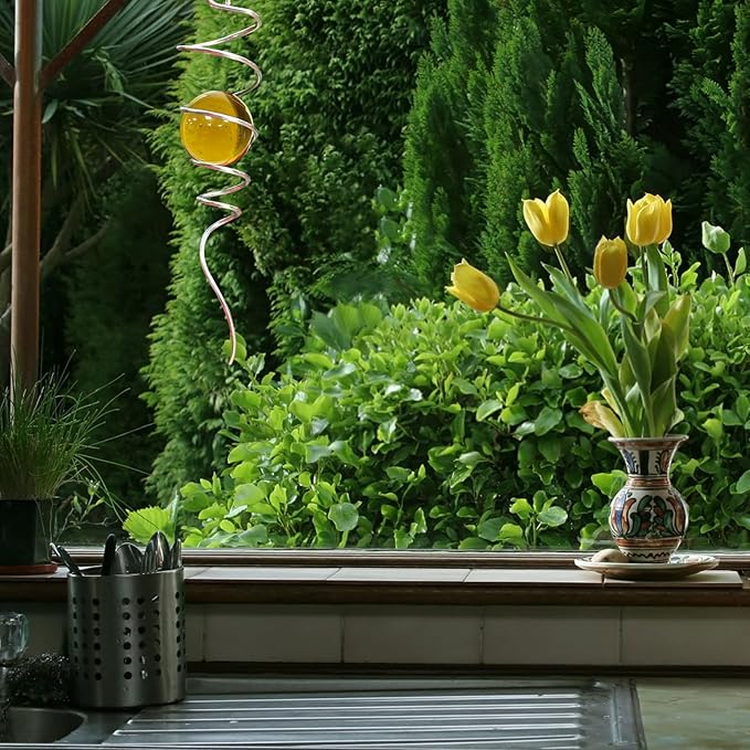 - 【High Quality】11inch height spiral tail made of #304 stainless steel wire,the 2inch colored ball made of pure solid color glass material,have good weather resistant,no fading under sunshine.Better quality than iron material with nickle plating and painting color glass ball in the market.