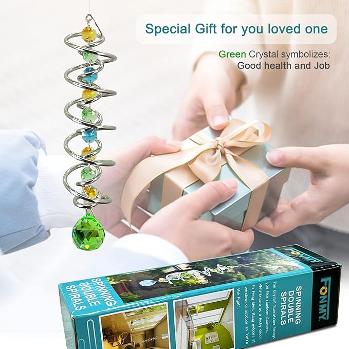 - 【HIGH QUALITY】:Made of stainless steel wire and crystal material, specail double structure spiral tail w/ solid green color K9 crystal glass ball and raibow color chain crystals , promised good weather resistant and amazing decoration. All FONMY crystal ball made of top crystal glass material with finely crafted, high clarity and cast beautiful rainbows, could turn the sun's rays into many rainbows.