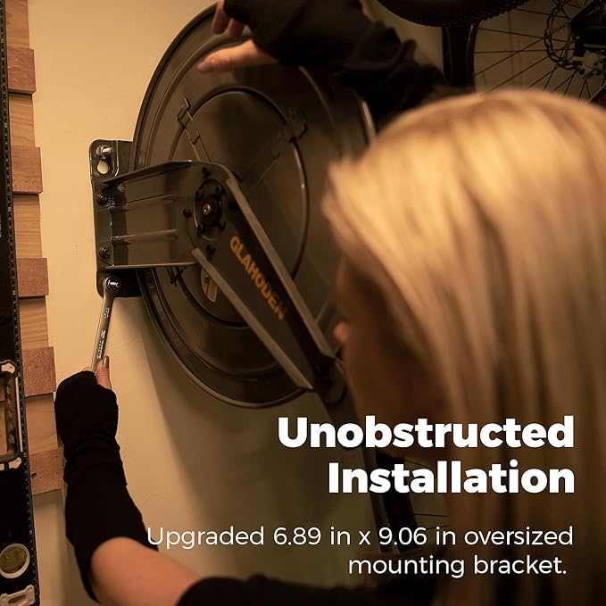- Larger Mounting Bracket: GLAHODEN retractable air hose reel 50 ft has increased the bracket size to 6.89 in × 9.06 in, you can easily access the back of the retractable air reel to tighten the bolts. The upgraded high-strength expansion bolts make the installation more solid and reliable.