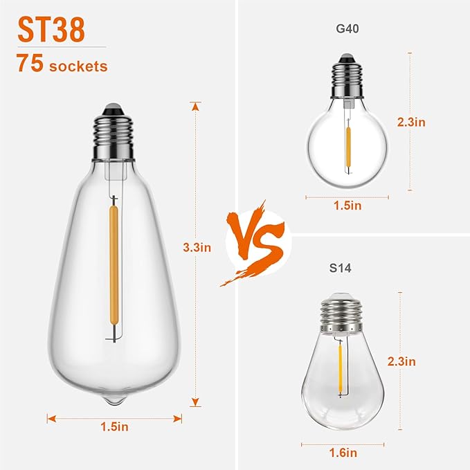 - Energy-Saving 30000 Hours: With increasing emphasis on sustainability, patio lights often use LED technology, which consumes significantly less energy compared to traditional incandescent bulbs. LED string lights are not only eco-friendly but also help reduce electricity costs.
