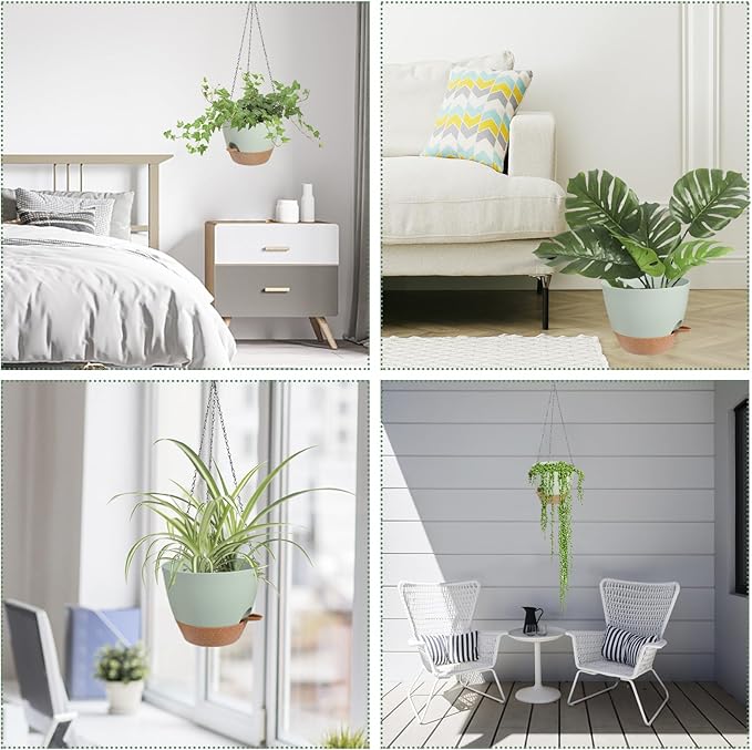 Hanging Planters for Indoor Outdoor Plants, 1 Set Self Watering Hanging Pot with Drainage Holes & Removable Tray (Green-12inch, 12'')