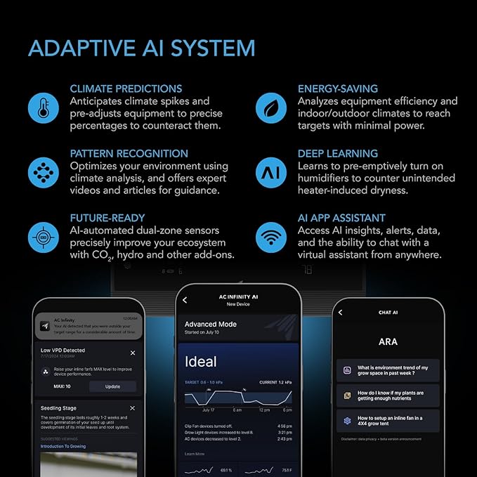 - AI-driven controller predicts climate shifts using real-time and historical data, auto-adjusting connected devices for optimal grow conditions.