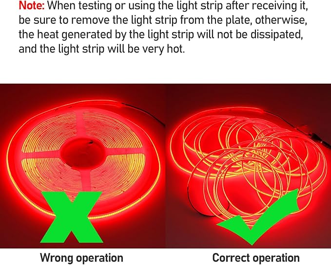 - 【Widely use】The COB LED strip light is Cuttable and self-adhesive backing suitable for Home decoration,such as Cabinet,Kitchen,stair,mirror,Decorative lighting for high-end entertainment venues.