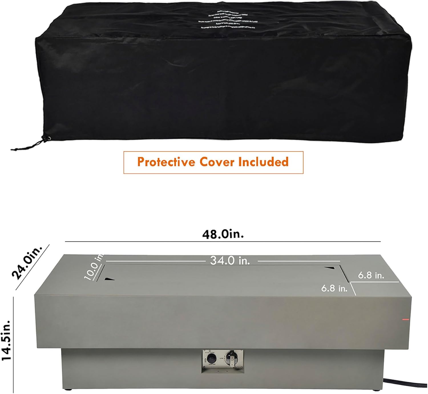 48-inch Fire Table with Natural Gas Conversion Kit, 50,000BTU Outdoor Modern Patio Fire Pit Table w/Rectangular Burner Lid, Glass Rocks, Cover