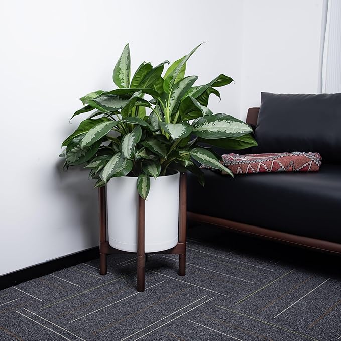 - A Complete Set: Minimalist plastic planter, combined with a sculptural, solid wood stand that match perfectly together and looks great in any home.