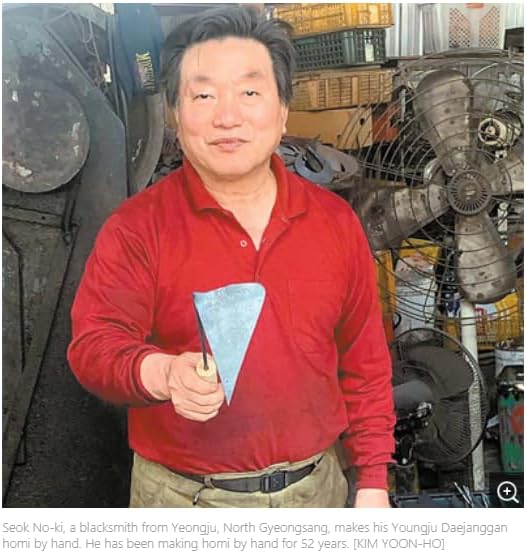 Fits All Hand Sizes: Youngju Homi & Korean Garden Hand Plow Hoe - Korean Master Blacksmith Seok No Ki Crafted - Ideal for Easy Gardening, Weeding, Farming - Safety Cover Included. Authentic, Handmade