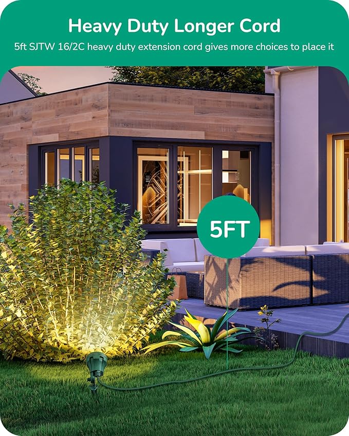 - [Adjustable Lighting Angle] Customize your landscape with this plug in outdoor spotlight; features a 180° adjustable lighting angle, allowing you to tailor the light direction to suit your landscape and outdoor design preferences