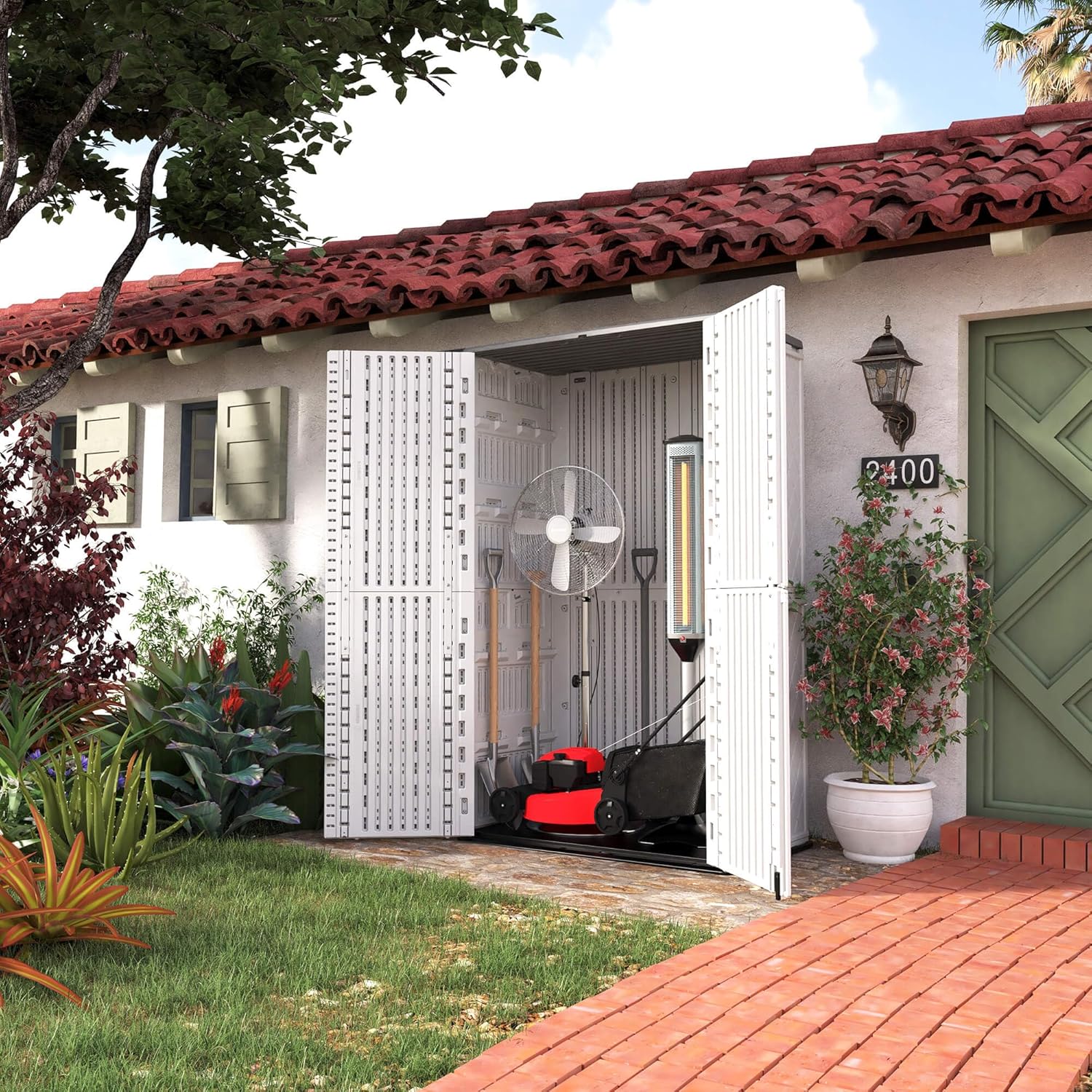 HOMSPARK Storage Shed Weather Resistance, Multi-Purpose Outdoor Storage Cabinet Waterproof, Outdoor Storage Cabinet for Garbage Cans, Lawnmower, Garden Accessories (Off White, Tall shed-53 cu ft)