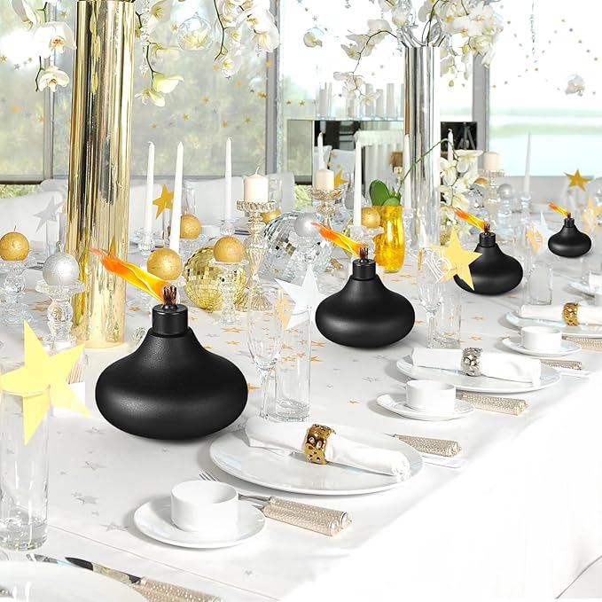 - ✿High Quality Metal Table Top Torches: Our Metal Table Top Torches made of premium metal. durable and lightweight. Each tabletop torches hold approximately 24.5 oz of fuel, allowing the burning time more than 19 hours .