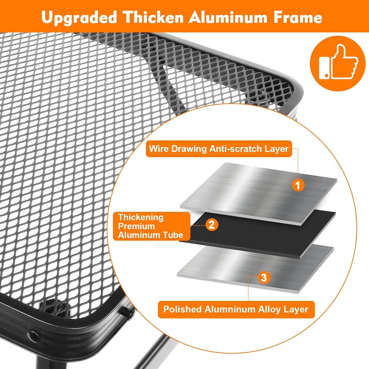 - [Robust and Sturdy] The folding table is made of high-quality aluminum alloy, ensuring its sturdiness and durability. The table top is designed with a metal mesh surface and has been treated with a thickened paint coating, allowing it to withstand prolonged exposure to high temperatures. When stored in the garden, it is resistant to rain and snow, as the limited contact area with the table surface minimizes the risk of staining and rusting