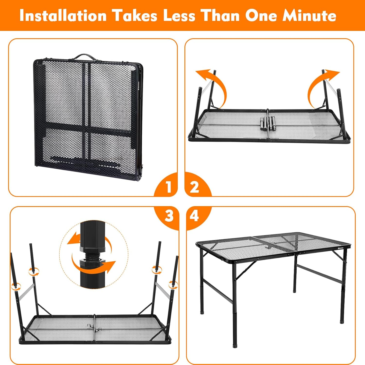- [Adjustable Grill Table]The folding camping table allows you to adjust the height of the camping table from an initial height of 16.5 inches to a height of 22 inches,providing a perfect surface for you to picnic on the grass or grill standing up