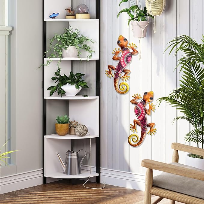 - 🦎【Design】 metal lizards outdoor decor measures 12*5.5*0.6 inch,suitable size for any space. Exquisite lizard wall-hanging suit uses warm orange gradient as the main color, with the same color Bohemian pattern, vivid curly tail and 3d eyes, which will bring special decoration to your garden
