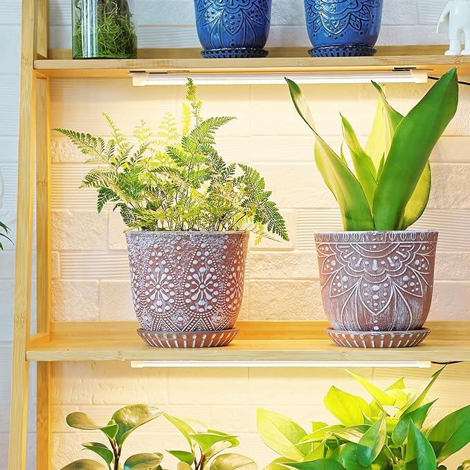 - 【Size & Package】:Pot Top Dia: 6 inch (can match a 5 inch inner pot), Pot H:5.15 inch; Saucer H:0.86 inch. Package: contains 2 ceramic flower pots, 2 ceramic saucers and 2 mesh pads(NOT INCLUDE PLANT)