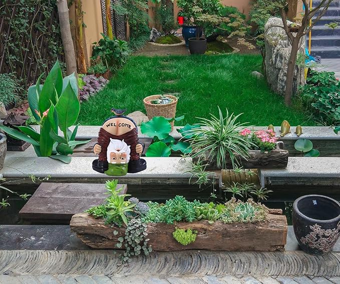 - 【High Quality】 This Garden Statue is made of highquality resin,durable and waterproof.lt with sunscreencoating will not fade easily even under long-termsunlight exposure