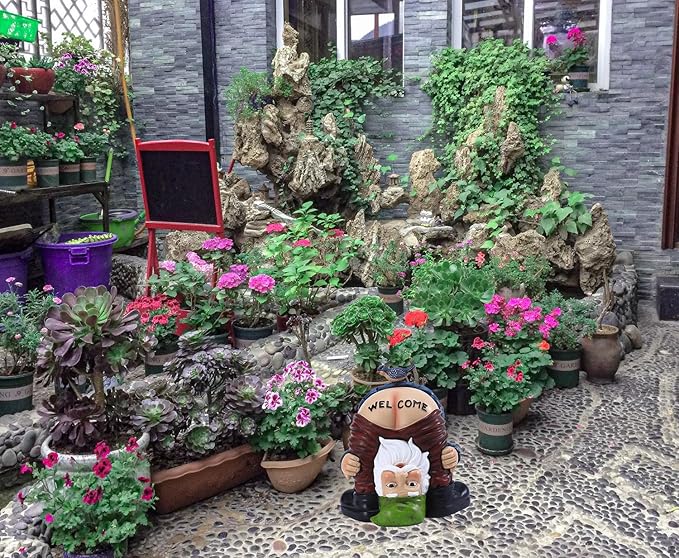 - 【Funny Garden Decor】 Plant this charming littleGarden Statue anywhere, and enjoy funny figurines byday and night.and when gnomes are placed in youranywhere ,the unique image of garden gnome adds funto your environment.