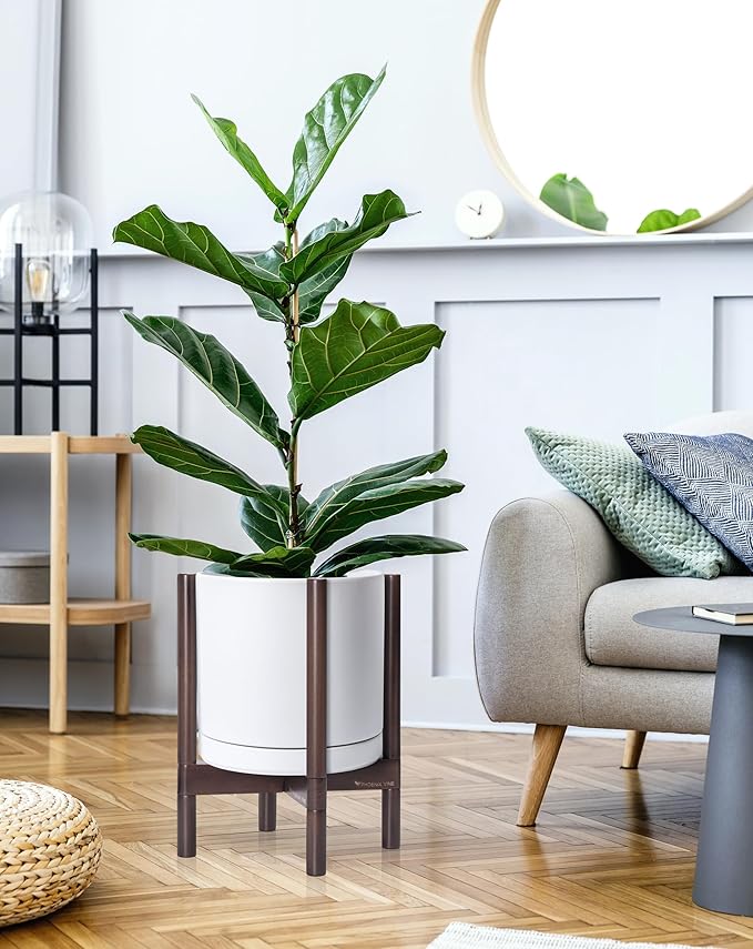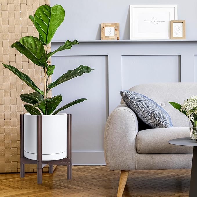 - A Complete Set: Mid-century ceramic planter, combined with a sculptural, solid wood stand that match perfectly together and looks great in anywhere.