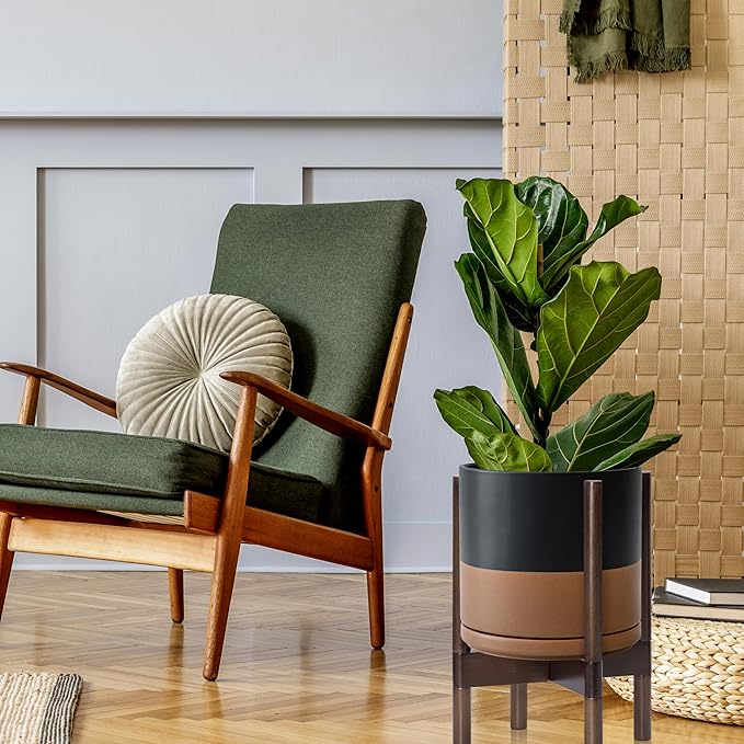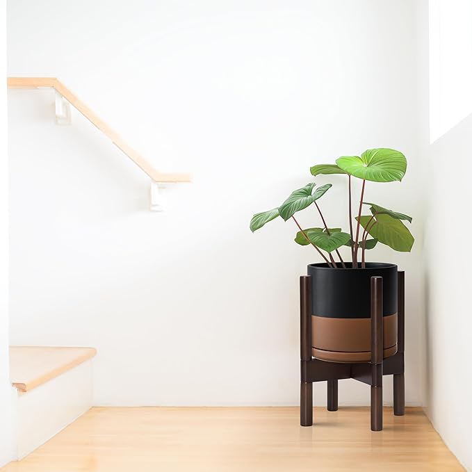 - A Complete Set: Mid-century ceramic planter, combined with a sculptural, solid wood stand that match perfectly together and looks great in anywhere.