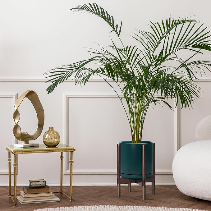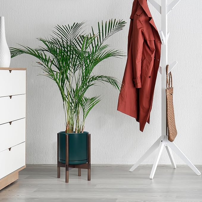 - A Complete Set: Mid-century ceramic planter, combined with a sculptural, solid wood stand that match perfectly together and looks great in anywhere.