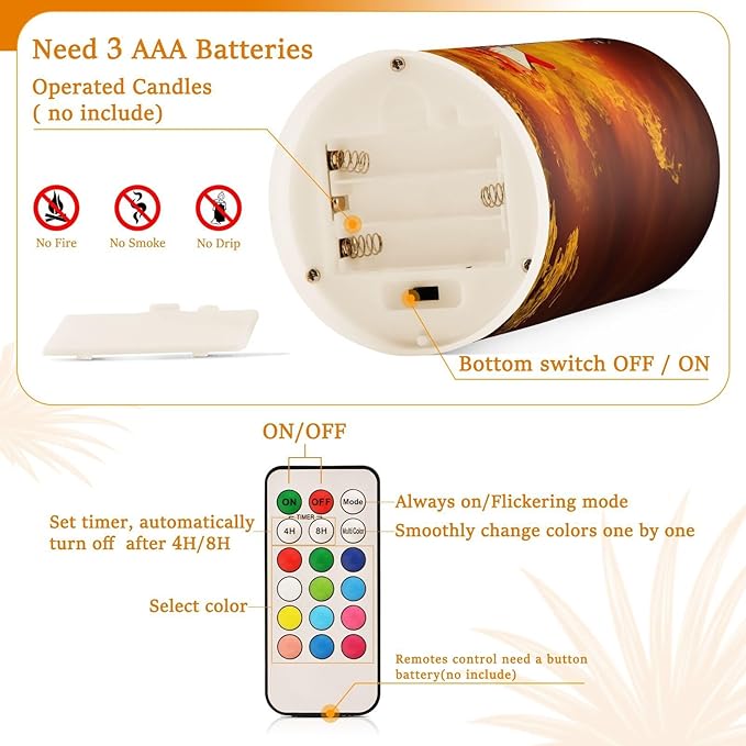 - Convenient Remote Functions: Includes an 18-key remote controller with a timer. You can control these candles remotely when they are placed somewhere difficult to touch. Set 4H/8H timers will save you trouble turning them on/off, they will come back on automatically at the same time every day. Also, you can adjust the light color as you want