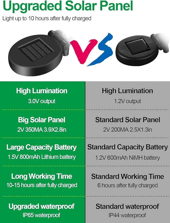- 【𝟏𝟎𝟎% 𝐒𝐨𝐥𝐚𝐫 𝐏𝐨𝐰𝐞𝐫𝐞𝐝 & 𝐀𝐮𝐭𝐨 𝐎𝐧/𝐎𝐟𝐟】Equipped with fully upgraded 1.5V/800mAh solar panels, convert sunlight into electricity faster and reach up to 25% more efficient than ordinary solar lights, work up to 10 hours. The solar cross lights will be auto-on/off & charged by sensing the surrounding environment. ⚠️(Note: Please turn on the switch "ON" for charging).