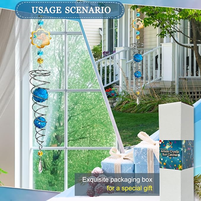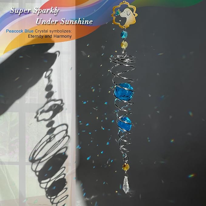 - 【PREMIUM CRYSTAL SUNCATCHER】The spiral with crystal is a special sun catcher rainbow maker, it’s Super Sparkly under sunshine. You can also add a motor(not include) to let the spiral to spin ,while spiral tail rotating (it can’t spin by itself.), the crystal ball seems to move up and down like floating and dancing in air, presents the magical visual illusion.