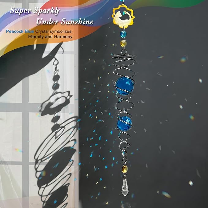 - 【PREMIUM CRYSTAL SUNCATCHER】The spiral with crystal is a special sun catcher rainbow maker, it’s Super Sparkly under sunshine. You can also add a motor(not include) to let the spiral to spin ,while spiral tail rotating (it can’t spin by itself.), the crystal ball seems to move up and down like floating and dancing in air, presents the magical visual illusion.