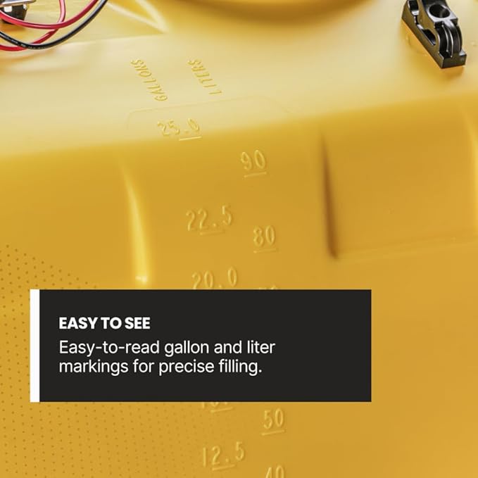 - SPRAY WITH CONFIDENCE: Handle herbicides, fertilizers, or pest control with ease. This 25-gallon sprayer offers precision application for both tight spaces and large areas