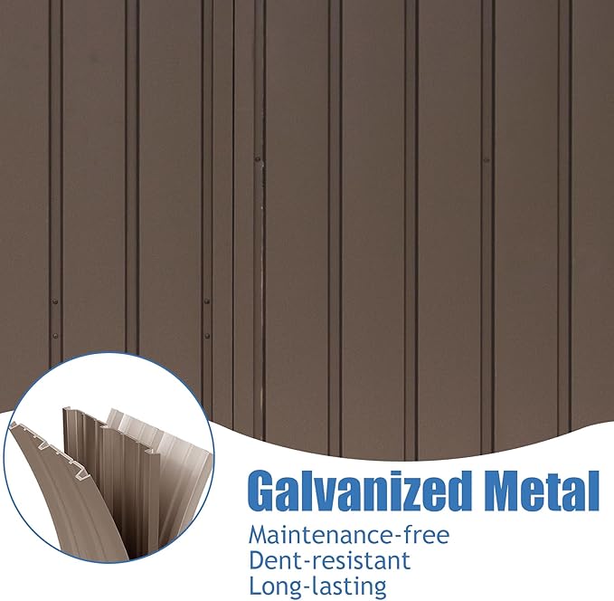 Domi Outdoor Storage Shed 10' x 8’, Metal Garden Shed with Galvanized Steel Frame for Bike, Tools, Lawn Mowers, Pool Toys, Outdoor Storage Cabinet with Lockable Door for Garden Lawn Patio (Dark Brown)