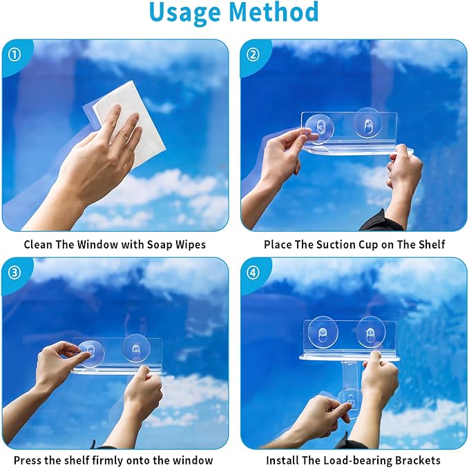 - MULTI-FUNCTION : The window shelf is perfect for bathroom storage shelves 、Indoor Plants, and kitchen spice rack, also great for displaying record albums, photo frames, toys. Use on windows, mirrors, or smooth tiles handicrafts to provide extra storage space