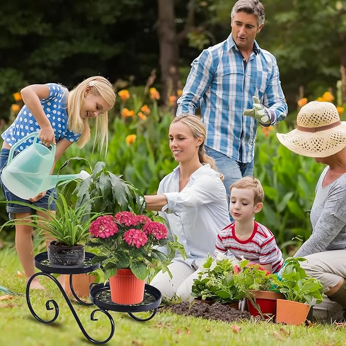 - Unique Design: Metal plant stands indoor. The S-shaped curved support frame and the disc with exquisite hollow pattern design are stable and full of simple retro and modern style. Use the 2 Tier tray to decorate the potted plants, plant rack makes your home full of nature, fashion, warmth and elegance.For storage or decor
