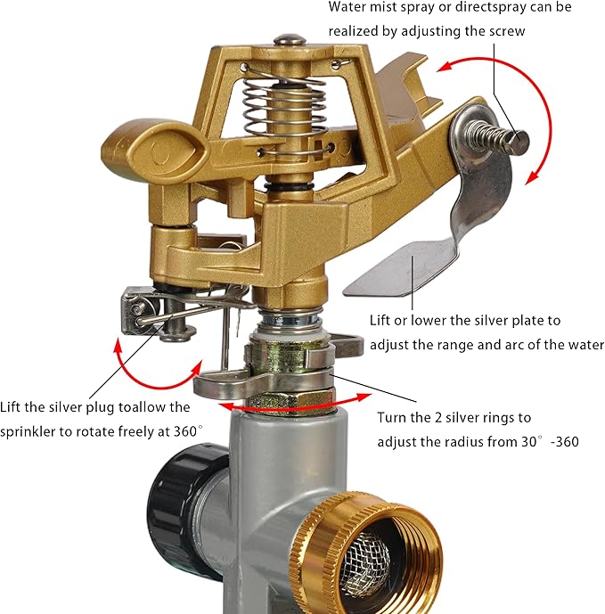 - High Quality: Constructed from high-quality zinc alloy and stainless steel, the garden sprinkler head, along with its sprinkler crafted from high-quality zinc alloy, is robust, durable, and waterproof, offering rust resistance for extended use.