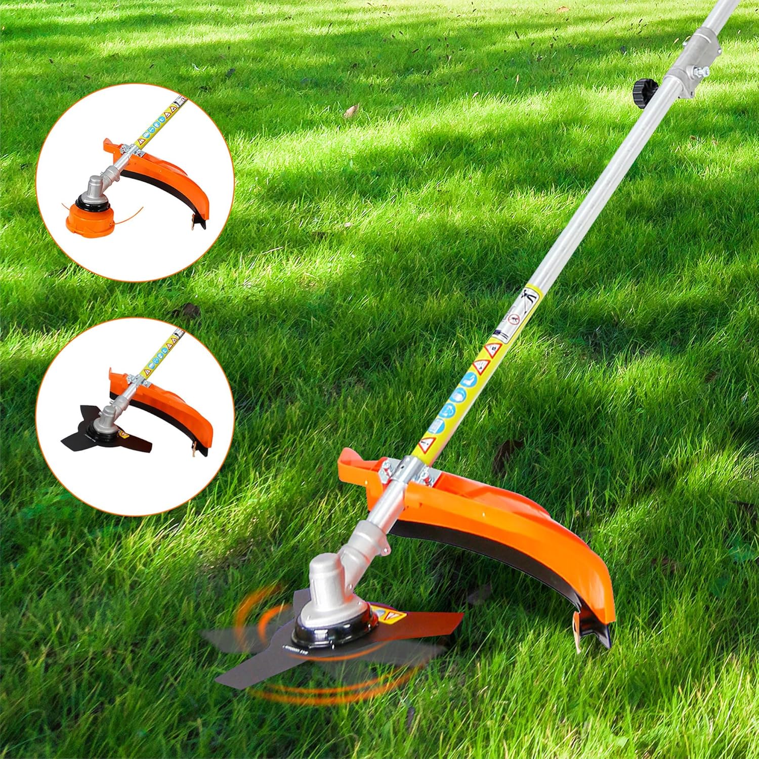 - 【Multiple Attachments】Our kit includes four professional-grade attachments, including a trimmer, brush cutter blade, hedge trimmer, and rotatable pole saw attachment. This eliminates the need for multiple tools and can save you valuable storage space.