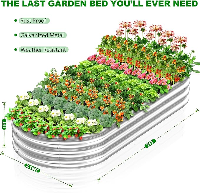 2 Pcs 7 x 3 x 1 FT Galvanized Steel Raised Garden Bed, Large Galvanized Steel Outdoor planter box for for Easy to DIY and clean - Raised Garden Beds outdoor for backyards, terraces and balconies
