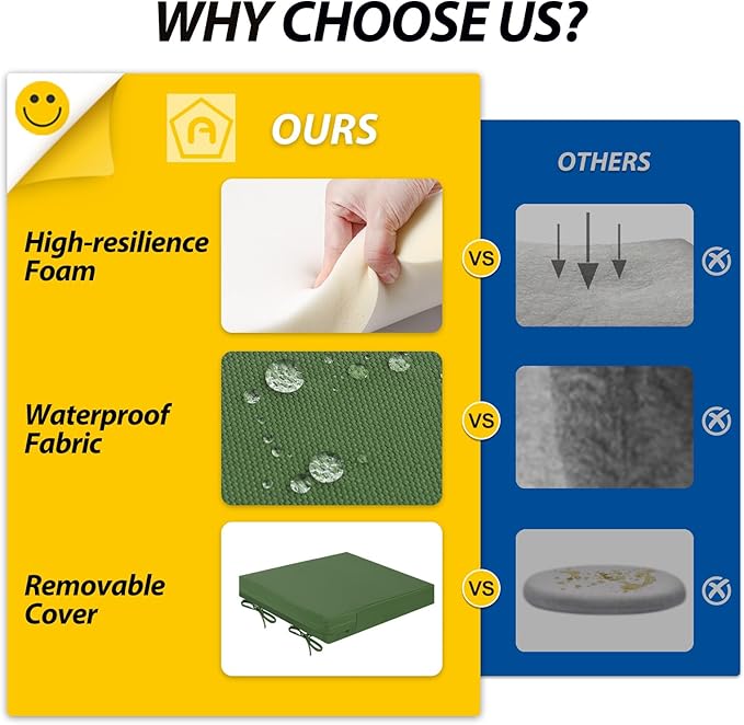 - Wide Use & Tips: These outdoor dining chair cushions fit pools, patios, balconies, decks, backyards, and gazebos. Foam inserts and covers are packed separately in bags and placed in one box—check all parts. Easy assembly required