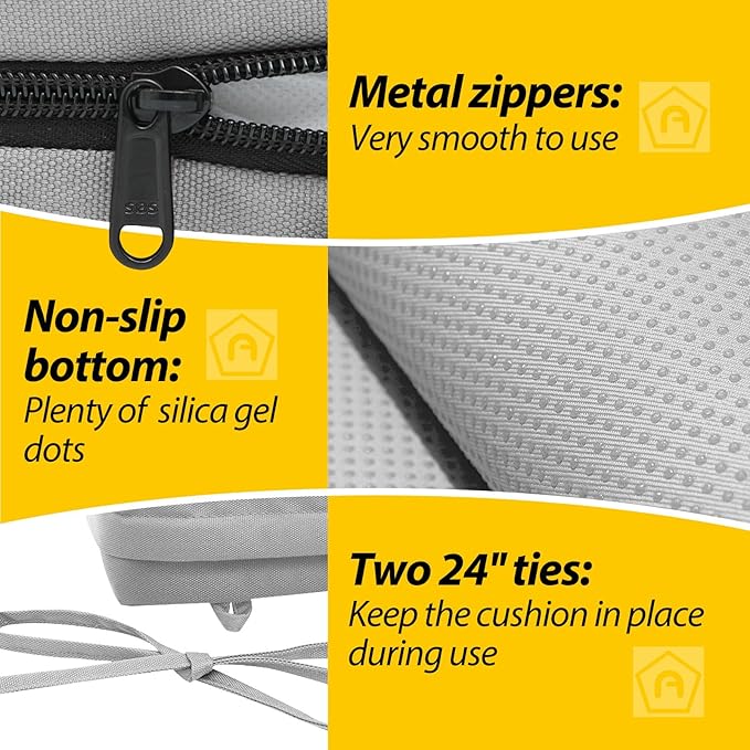 - Wide Use & Tips: These outdoor dining chair cushions fit pools, patios, balconies, decks, backyards, and gazebos. Foam inserts and covers are packed separately in bags and placed in one box—check all parts. Easy assembly required