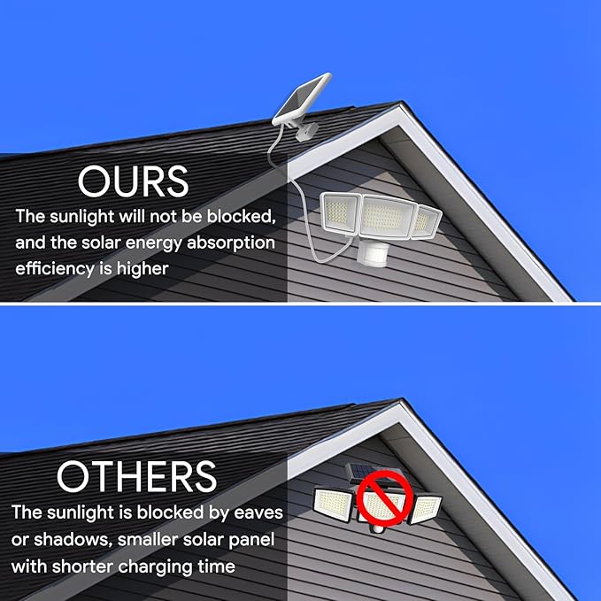 - 【PIR Motion Sensor & Wide Angle】Energetic security flood light has adjustable 3 heads. PIR motion sensor detects movement of people, animals, or vehicles within a 180°range, up to 69ft away. Therefore providing a broader range of lighting and security for your home