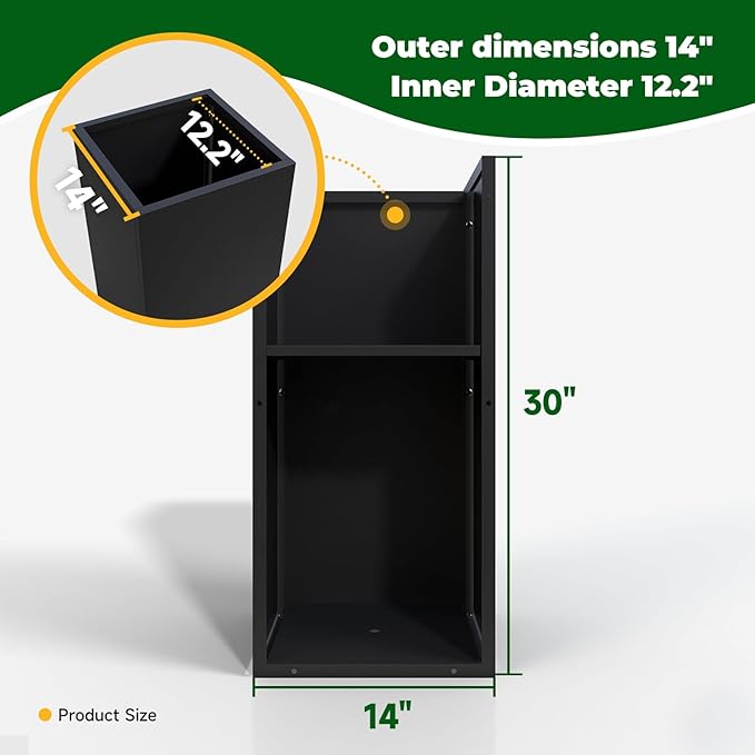 Galvanized Steel Metallic Heavy Planter for Outdoor Plants Metal Planters Box 14"x14"x30" Spliced Flower Planter with Partitions for Outside,Indoor,Garden (Black, 14 * 14 * 30)