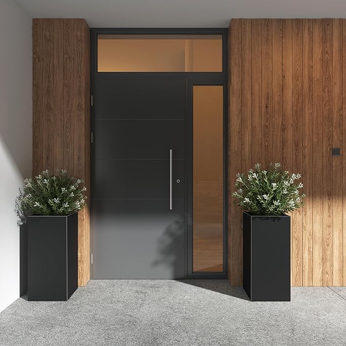 - WIDELY APPLICABLE - The black sleek metallic finish adds a touch of modern sophistication to any space, whether it's your garden, patio or living room.This tall rectangular flowerpot serves as a beautiful accent.