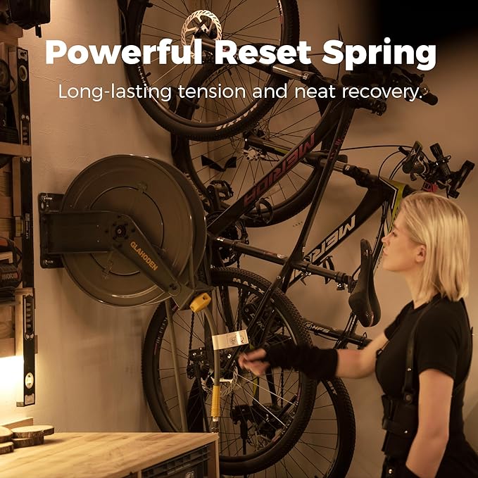 - Heavy Duty Double Arm All-steel Construction: GLAHODEN air compressor hose reel retractable is compact and virtually indestructible by using 0.04 in thickened steel and 0.15 in thick support arm. The high quality powder coated surface is extremely durable and always looks like new (weighs 36.7 lbs, please install on a sturdy surface).