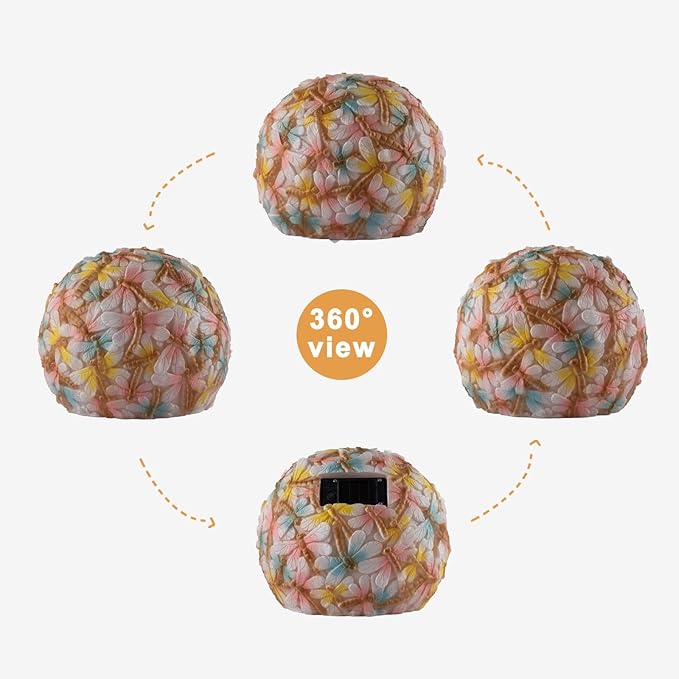 - 【COLOR CHANGING SOLAR LIGHT】This solar dragonfly ball statue is very easy to install and use.Simply turn on the switch and place it under the sunlight and let it charge during the day.These solar lights on dragonfly ball will automatically turn on at night to provide a warm and welcoming glow for 8-10hours.
