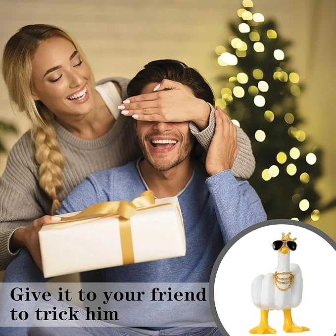 - New Design:The playful Middle Finger Duck is even cooler with the new addition of sunglasses, a necklace, and a crown that will make anyone who sees it smile and add a touch of fun to their lives, whether it's at home or in the office